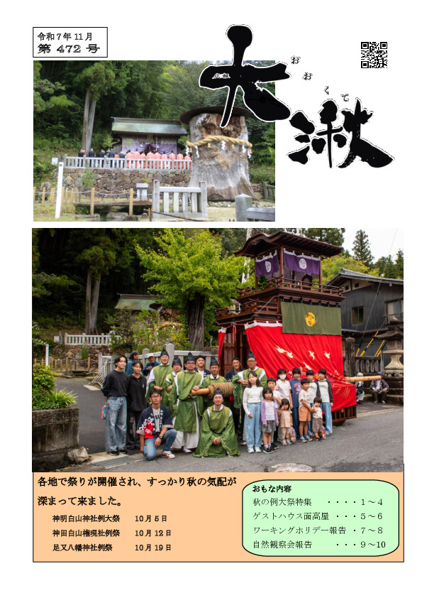 先月は各地区で秋祭りが行われました。今ではめっきり寒さを感じる様になりました。 本文はこちらをクリックして下さ […続きを読む]